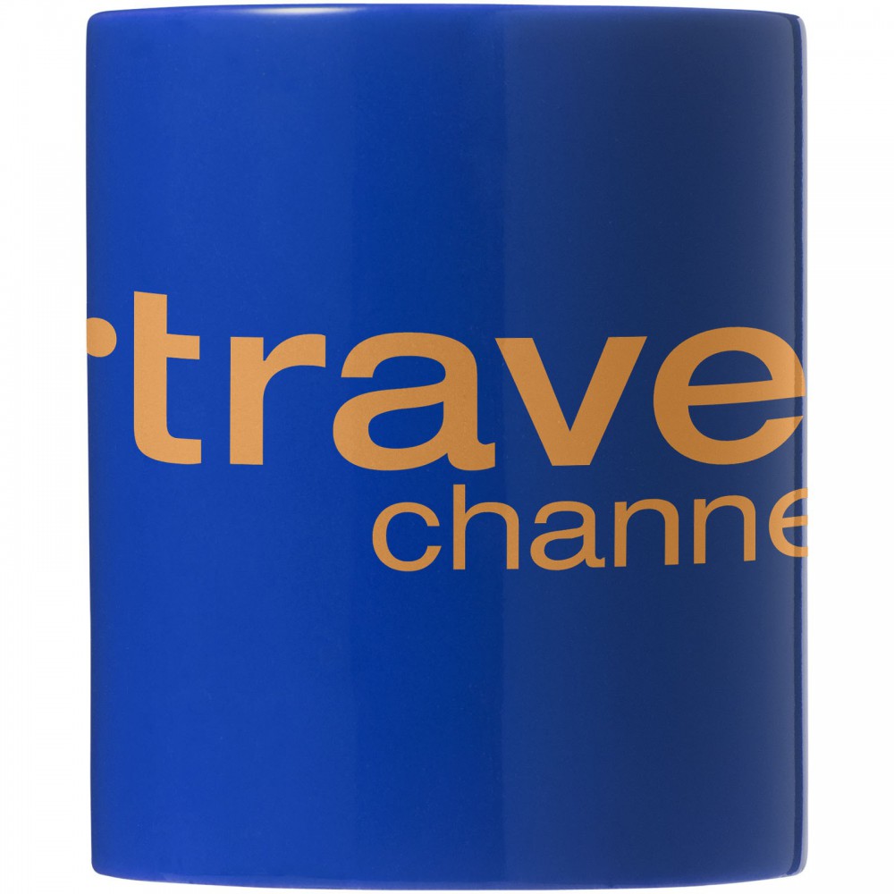 Klasszikus 330 ml-es kerámia bögre. Nem szivárgásmentes. Szénsavas italokkal is használható. Mosogatógépben mosható és mikrohullámú sütőben történő melegítésre alkalmas. Fehér kartondobozban szállítjuk.