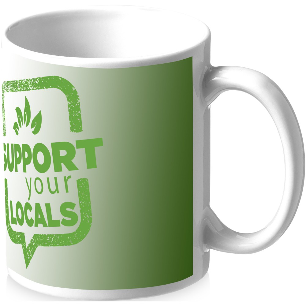Hagyományos stílusú kerámia bögre 330 ml űrtartalommal. Csak szublimációs technikával emblémázható. Nem szivárgásmentes. Szénsavas italokkal is használható. Mosogatógépben mosható és mikrohullámú sütőben történő melegítésre alkalmas. Fehér kartondobozban szállítjuk egyesével csomagolva.