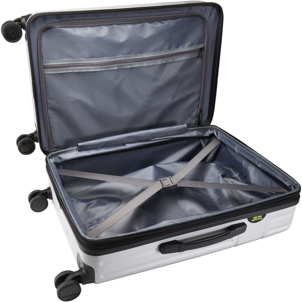 Ütésálló, újrahasznosított műanyagból, RPET béléssel készült a Rover 24" bővíthető gurulós bőrönd, amely a tartósságot és az átgondolt kialakítást kedvelő modern utazóknak készült. Tágas, 70 literes kapacitása bővíthető, így a plusz csomagoknak is jut hely - tökéletes hosszabb utakhoz. A GRS tanúsítvánnyal rendelkező bőrönd dupla csöves alumínium vázzal és 360 fokban forgó, 4 kerekes rendszerrel rendelkezik a könnyű manőverezésért. A beépített TSA számzár extra biztonságot nyújt, míg a kényelmes fogantyú megkönnyíti a szállítást. Belsejében kompressziós pántok és cipzáras rekeszek gondoskodnak a csomagok rendszerezett tárolásáról az egész utazás során.