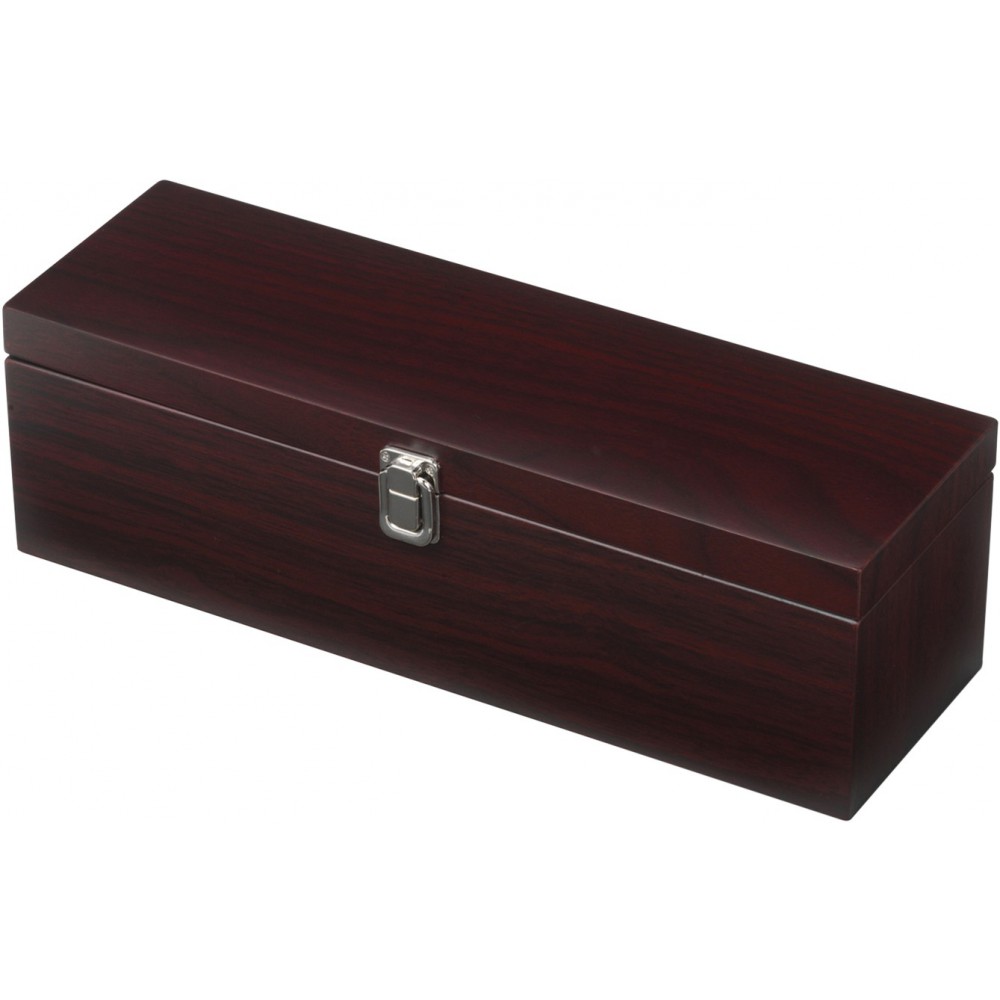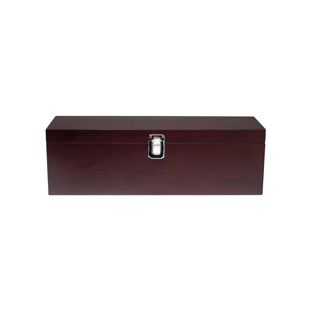 Bortartó fadoboz 0,75 l-es borosüveg számára, 5 db-os borosgazda készlettel. (Bor nélkül.)