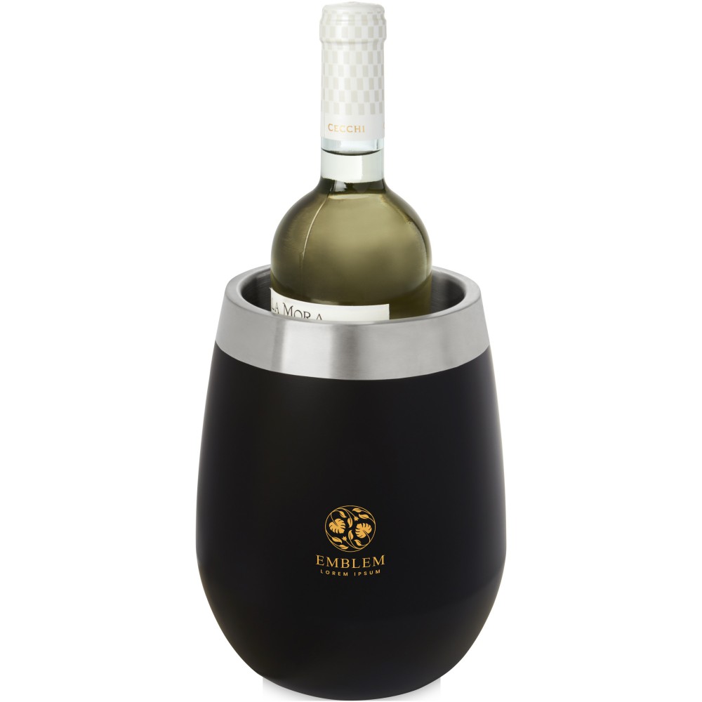 Duplafalú rozsdamentes acél borhűtő színes külső réteggel. A belső acélréteg könnyen tisztítható, és kellemesen és hűvösen tartja a bort.