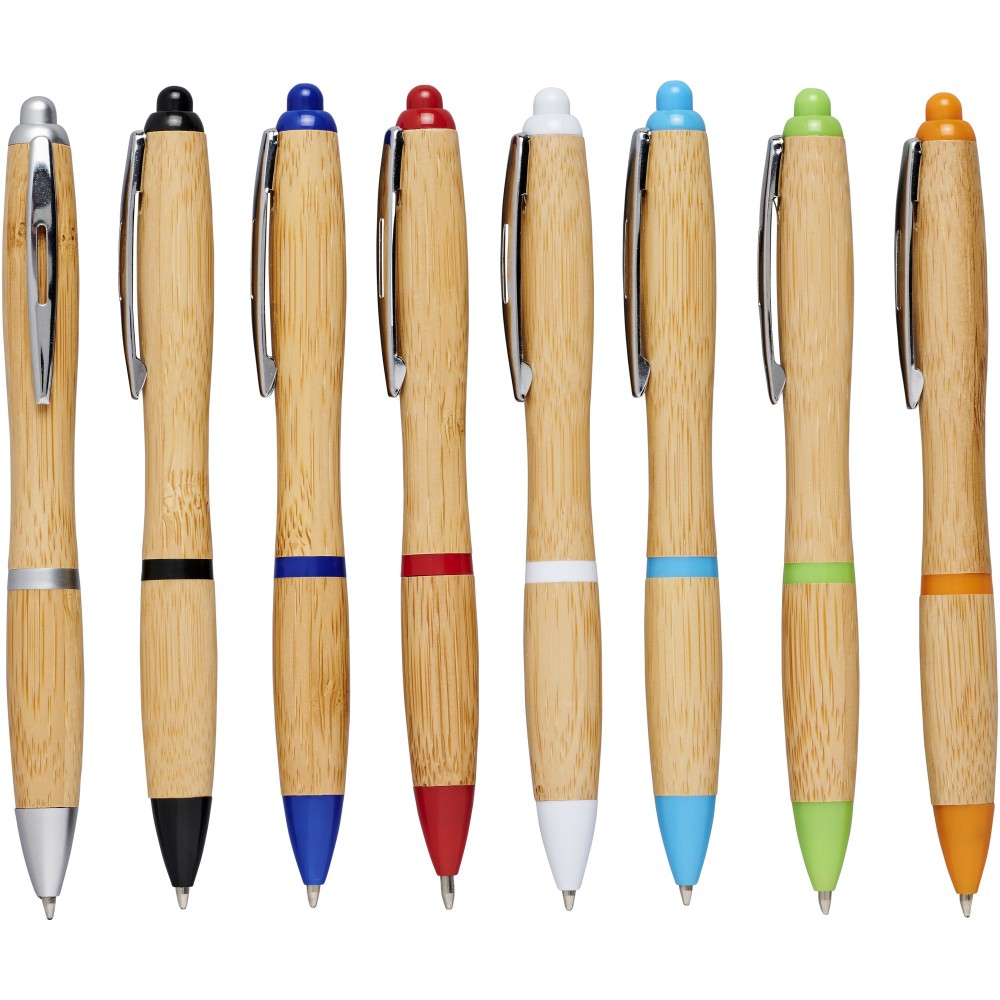 Golyóstoll nyomógombos mechanikával. Bambusz tolltest, króm klipsz, ABS műanyag. A bambusz természetes alapanyag, árnyalata darabonként változó lehet.