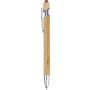 Bambusz golyóstoll krómozott fém részletekkel. Krómozott műanyag tollheggyel és fém klipsszel. Színes érintő a nyomógombon. Kb. 800 méter íráshossz. Kék tollbetéttel.
