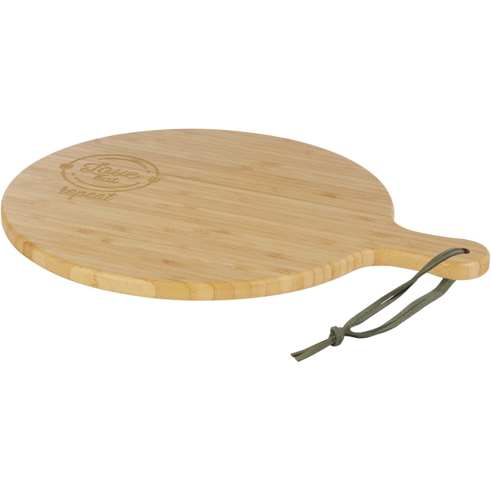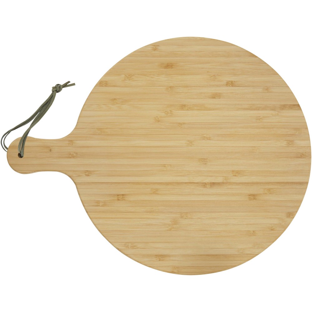 A Delys vágódeszka bambuszból készült, ideális a fenntartható választást preferáló cégek számára. A deszka átmérője: 30,5 cm. Fogó hossza: 8 cm. Deszka vastagsága: 1,4 cm. Mikrohullámú sütőbe vagy mosogatógépbe tenni nem alkalmas.