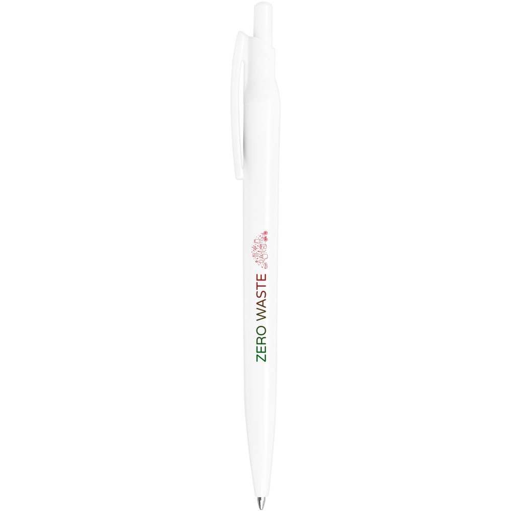 Nyomógombos golyóstoll újrahasznosított PET anyagból, tanúsítvánnyal. Egy palackból egy golyóstoll gyártható. Tartalmaz egy európai X20 cserélhető kék tollbetétet, íráshossza 2000 méter. Olaszországban készült. Újrahasznosított PET műanyag.