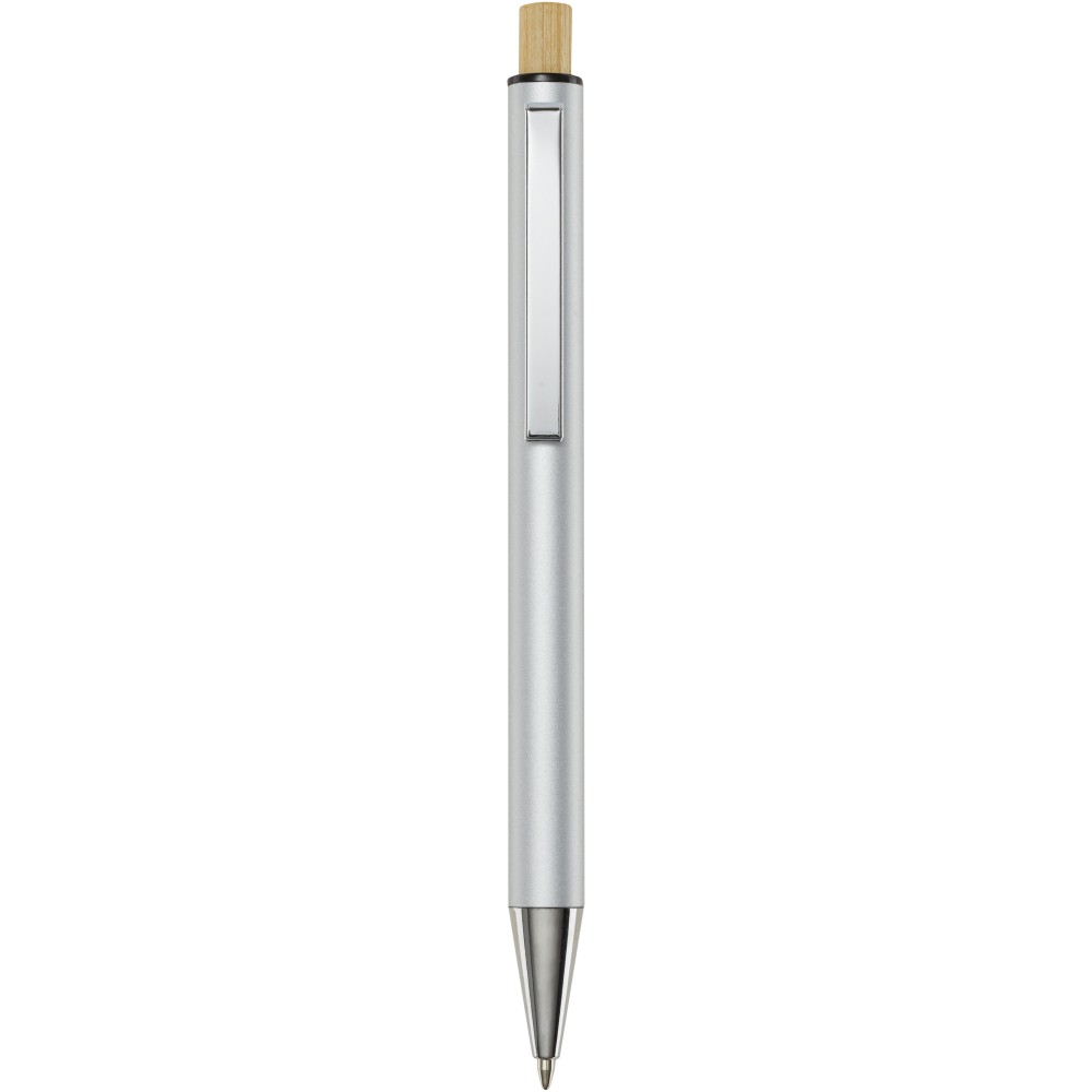 A Cyrus golyóstoll újrahasznosított alumíniumból készül, ami kevesebb energiát igényel, mint az alumínium nyersanyagból történő előállítása. Emellett csökkenti a hulladéklerakókba kerülő hulladék mennyiségét és hozzájárul a természeti erőforrások megőrzéséhez, amelynek célja az üvegházhatású gázok kibocsátásának csökkentése. A nyomógomb bambuszból készült. Tollbetét színe: fekete. Íráshossz: 800 méter. Tollhegy mérete: 1,00 mm.