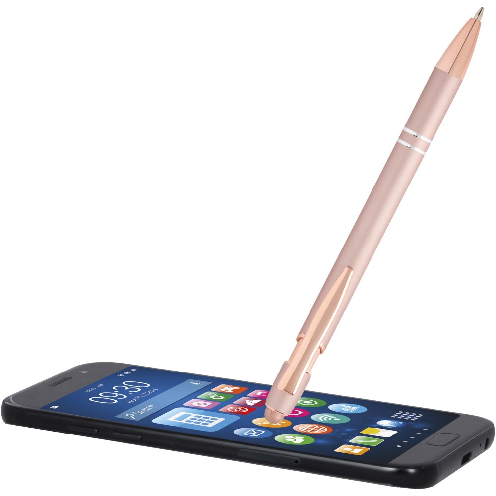 Nanna golyóstoll elegáns rózsaarany színben. A toll teste újrahasznosított alumíniumból, az érintőceruza pedig szilikonból készült, így érintőképernyős eszközökhöz is használható. Az újrahasznosított alumínium csökkenti a hulladéklerakók terhelését, segít megőrizni a természeti erőforrásokat, és célja az üvegházhatású gázok kibocsátásának mérséklése. Tinta színe: kék. Íráshossz: 800 méter. Tollhegy mérete: 1,0 mm.
