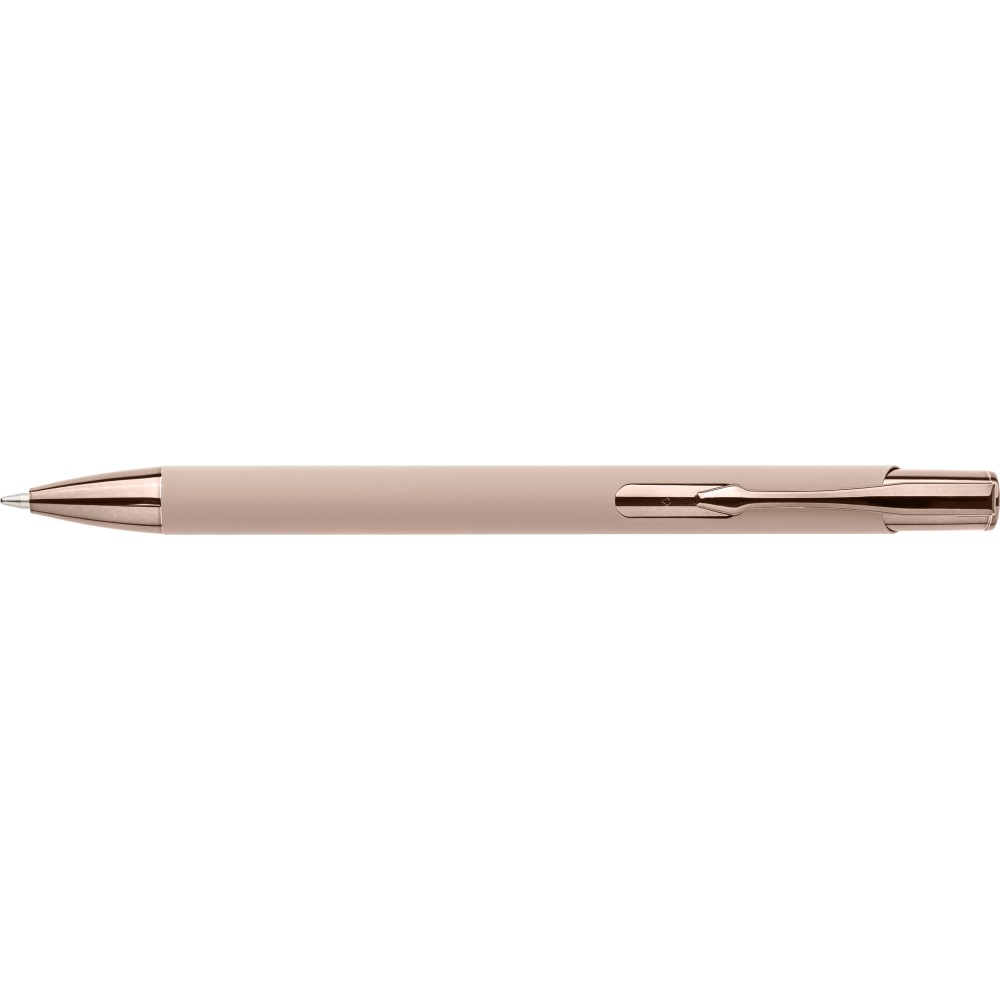 Újrahasznosított alumíniumból készült, gumírozott felületű golyóstoll, a toll színével harmonizáló UV-bevonatú műanyag és fém díszítéssel. Gravírozás után fényes tükörhatás jelenik meg. A tolltesten gravírozott recycled (újrahasznosított) alapanyagra utaló logó található. Megközelítőleg 800 méter íráshosszúságú, kék színű tollbetéttel.