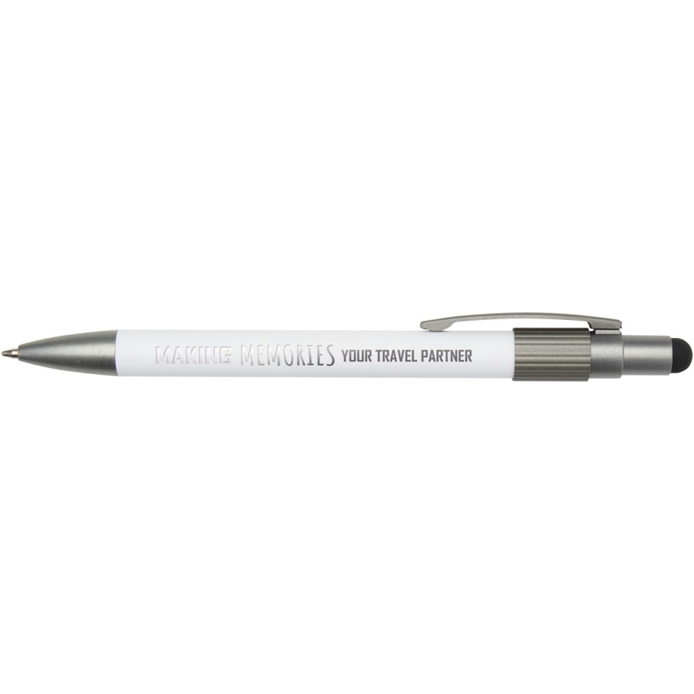 Golyóstoll érintővéggel és fidget spinnerrel, amely a praktikumot játékos dizájnnal ötvözi. A toll RCS tanúsítvánnyal rendelkező újrahasznosított alumíniumból készült, sima működésű nyomógombos szerkezettel és az érintőképernyőkhöz használható érintővéggel rendelkezik. A toll tetején a fidget spinner kiváló stresszoldó. Fekete tollbetéttel, íráshossza 1000 méter.