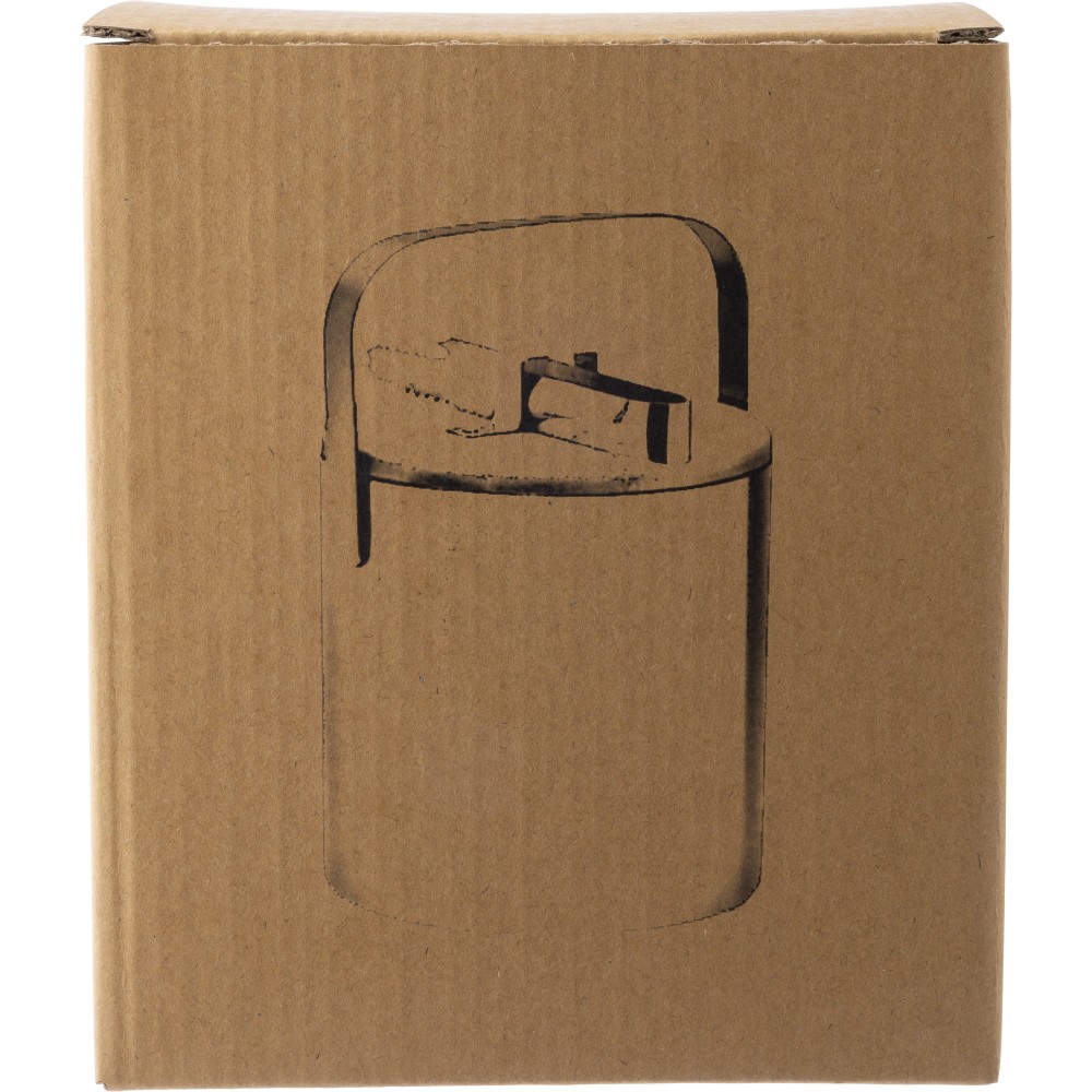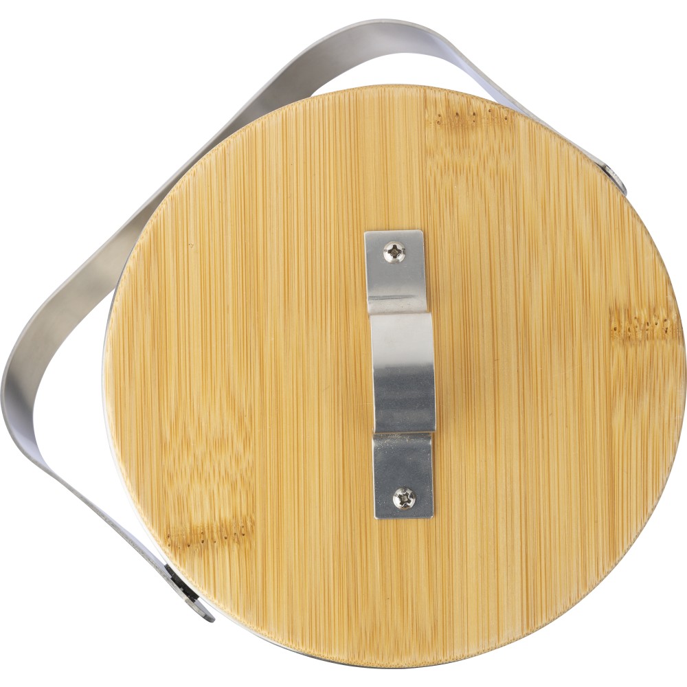 Duplafalú jegesvödör bambuszfedéllel és rozsdamentes acél fogantyúval. A belső 304-es, a külső pedig 201-es rozsdamentes acélból készült. Jégcsipesszel, 1200 ml-es űrtartalommal. Csomagolása barna papírdoboz.