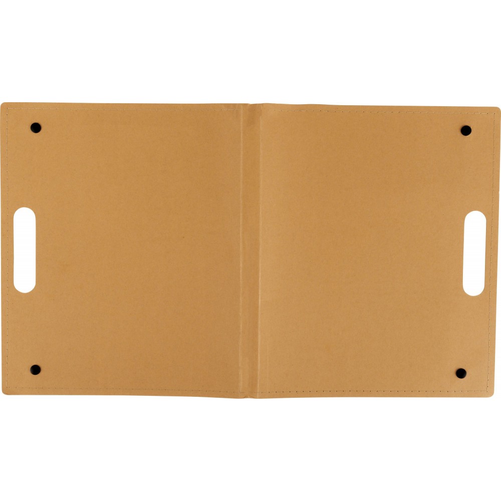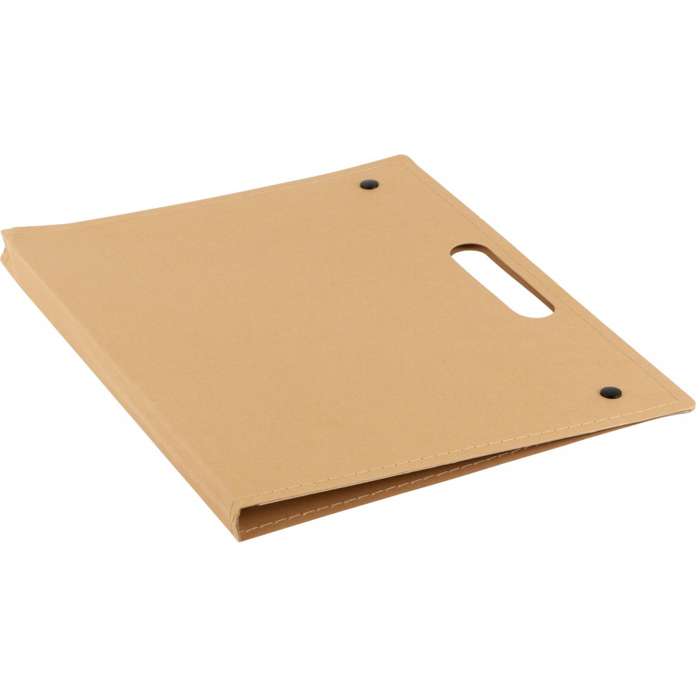 Karton mappa tartalma: 20 lapos jegyzettömb (kb. A4), egy karton toll fekete tintával és öntapadó jelölők 4 színben, 25 lappal színenként. 70 g, 600 g papír.