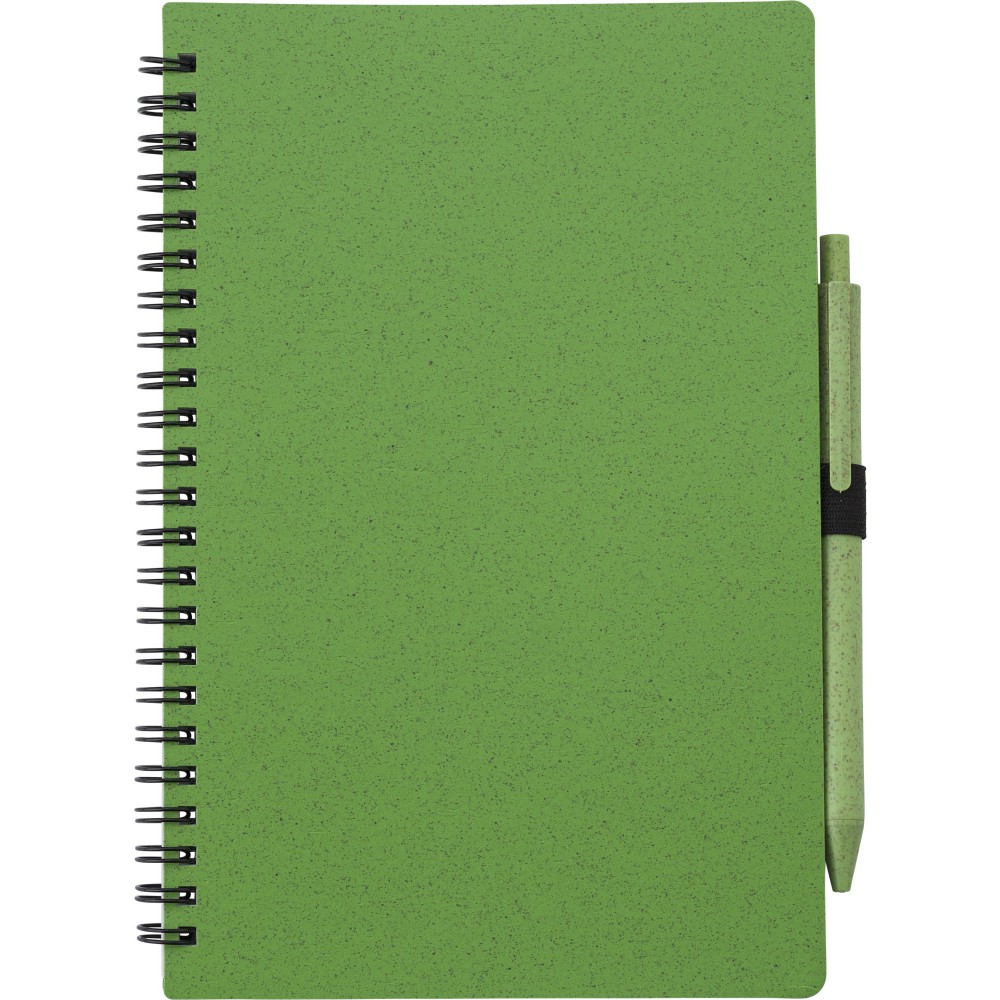 Szalma spirálfüzet tollal, zöld