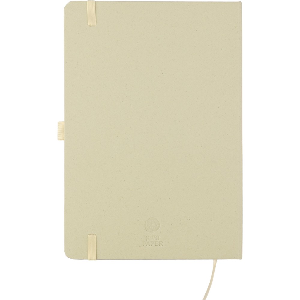 Újrahasznosított biohulladékból és kartonból készült A5-ös jegyzetfüzet 80 vonalas lappal, szójatintával nyomtatva. Minden füzet hátoldalán a hivatkozott alapanyag színének megfelelő dombornyomás található: zöld a citrusfélék, piros a cseresznye, kék a levendula, natúr a szőlő és a barna a mandula alapanyagra utal. A jegyzetfüzet olasz Favini papírral van bevonva.