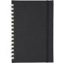 rPET jegyzetfüzet, kb. A5-ös méretű, 80 lapos. Kemény borítóval és rugalmas zárópánttal. Fehér karton spirállal (15 karikás), szalagos könyvjelzővel és 70 g/m2-es vonalas papírral. A hátoldalon rPET logóval. Selyempapírba csomagolva, nejlonzacskó nélkül.