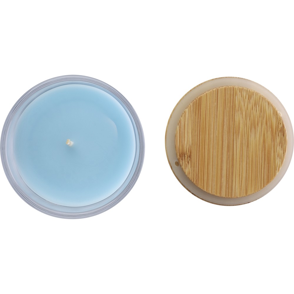 Illatgyertya üveg tartóban, világoskék
