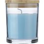 Üveg gyertyatartó 120 g vanília illatú, színes viasszal és bambusz fedéllel. Kb. 20 óra égési idővel. Csomagolása fehér papírhenger.