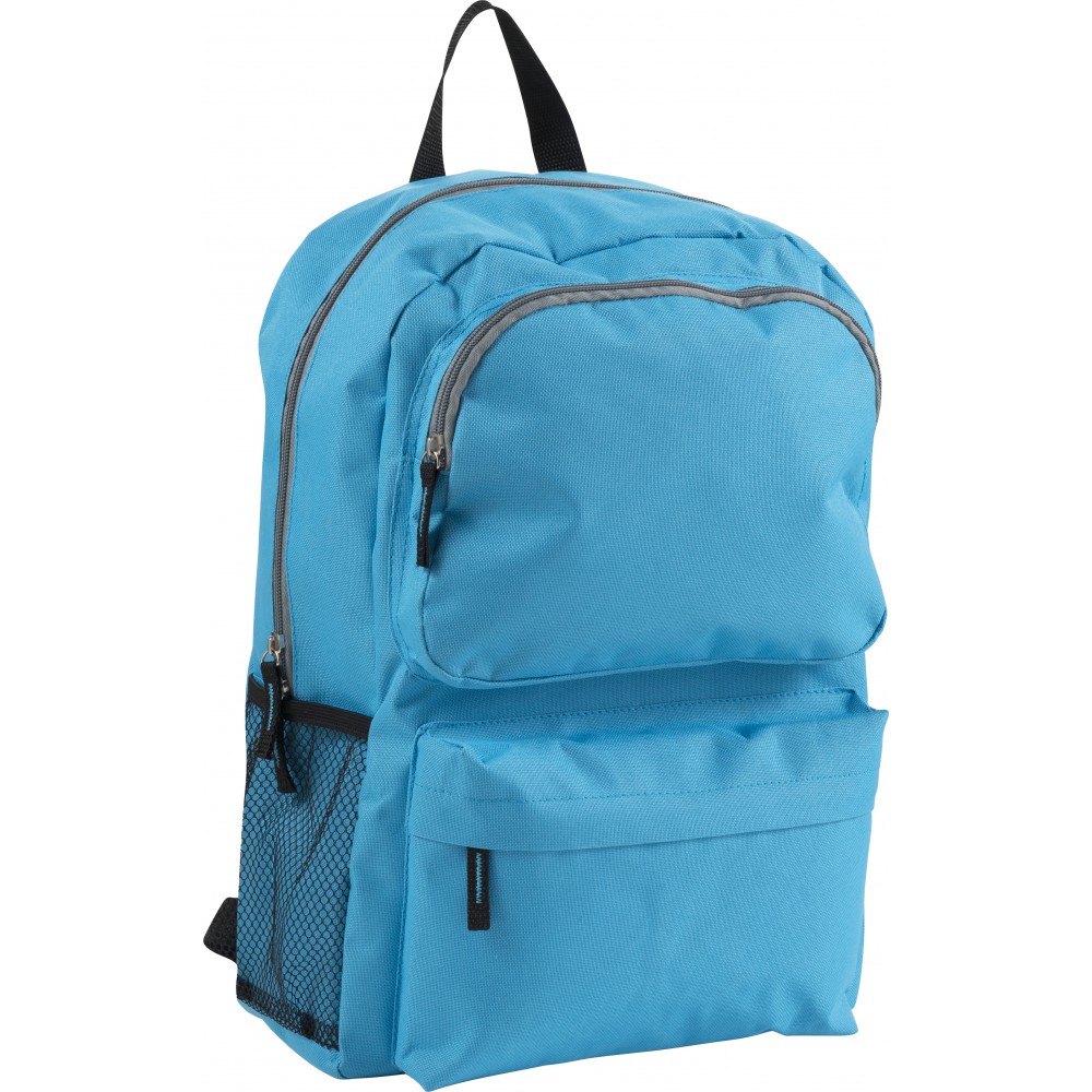 Hátizsák több különböző tároló résszel, cipzáros első zsebbel, párnázott, állítható vállpánttal. 600D poliészter.