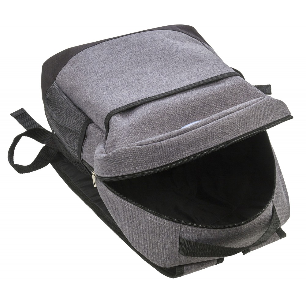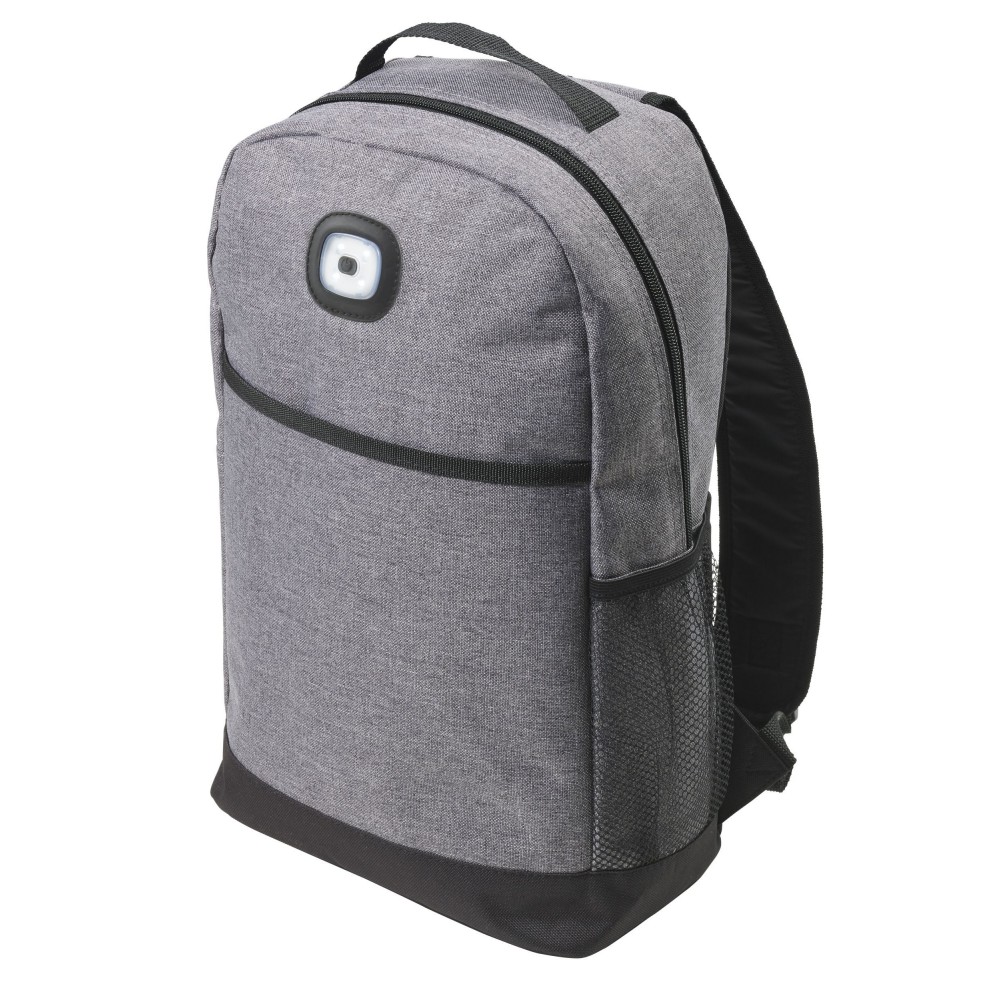 Kéttónusú hátizsák állítható és párnázott vállpánttal, párnázott hátkialakítással. Egy nagy főrész, elsőzseb és oldazseb. A hátizsák elején a COB fény kétféle állásban használható: folyamatos fehér vagy villogó piros. 300D és 210D poliészter. Az elemet tartalmazza.