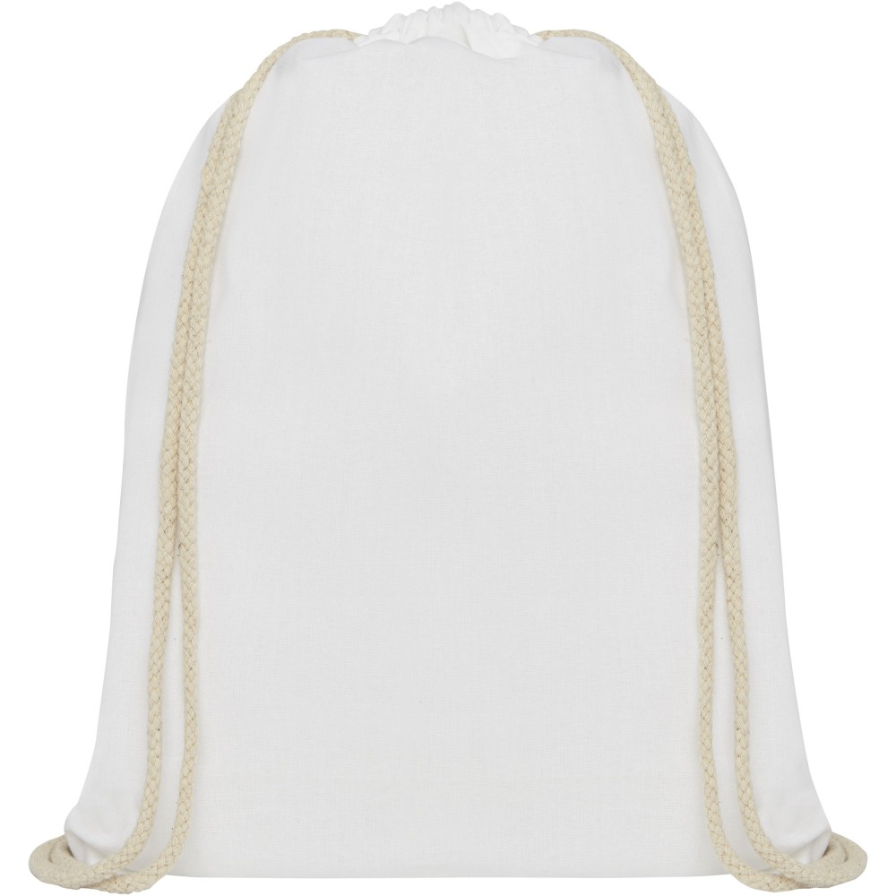 Tornazsák natúr húzózsinórral. Teherbírás: 5 kg. 140 g/m2 pamut. Pamut, 140 g/m2.