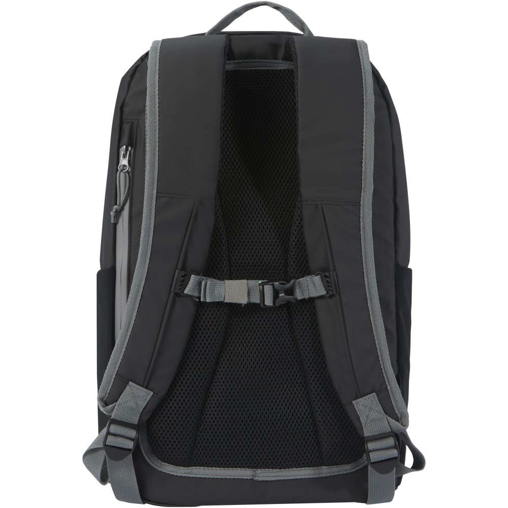 Vízálló laptop hátizsák GRS tanúsítvánnyal rendelkező újrahasznosított anyagokból, beleértve a cipzárakat is. Bélelt 15 -os laptoprekesszel rendelkezik, oldalsó nyílással a gyors hozzáférés érdekében, több hálós zsebbel, cipzáras elülső zsebbel és fényvisszaverő csíkokkal a láthatóság érdekében. A formázott és párnázott hátlapnak és az állítható mellkaspántnak köszönhetően még teljesen megrakott állapotban is kényelmesen hordozható. A GRS újrahasznosított anyagai közé tartozik a főszövet, a bélés, a pántok és a cipzárak. Űrtartalom: 21 liter. PVC-mentes.
