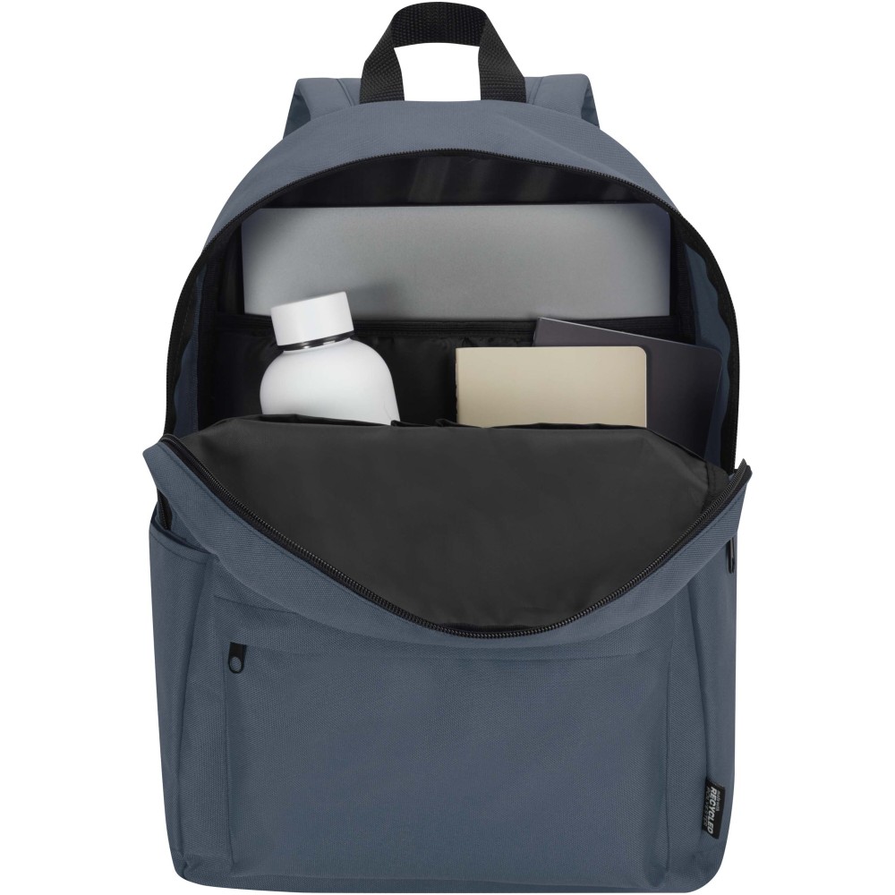 Vízlepergető, GRS tanúsítvánnyal rendelkező, újrahasznosított poliészterből készült a Byron városi laptop hátizsák, amely ideális választás munkába, iskolába vagy városi kiruccanásokra. Karcsú kialakítása 16 literes kapacitást kínál, valamint külön párnázott rekeszt akár 14" laptop számára. Belsejében praktikus rendszerező zsebek segítenek rendben tartani a felszerelést, míg két oldalsó zseb és egy cipzáras elülső zseb biztosít gyors hozzáférést a legfontosabb dolgokhoz. Akár ingázol, akár a várost fedezed fel, ez a kényelmes laptop hátizsák minden lépésnél stílust, tartósságot és funkcionalitást nyújt.