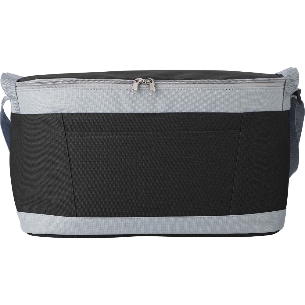 Hűtőtáska PEVA béléssel, nyitott első zsebbel, állítható pánttal. 600D poliészter.