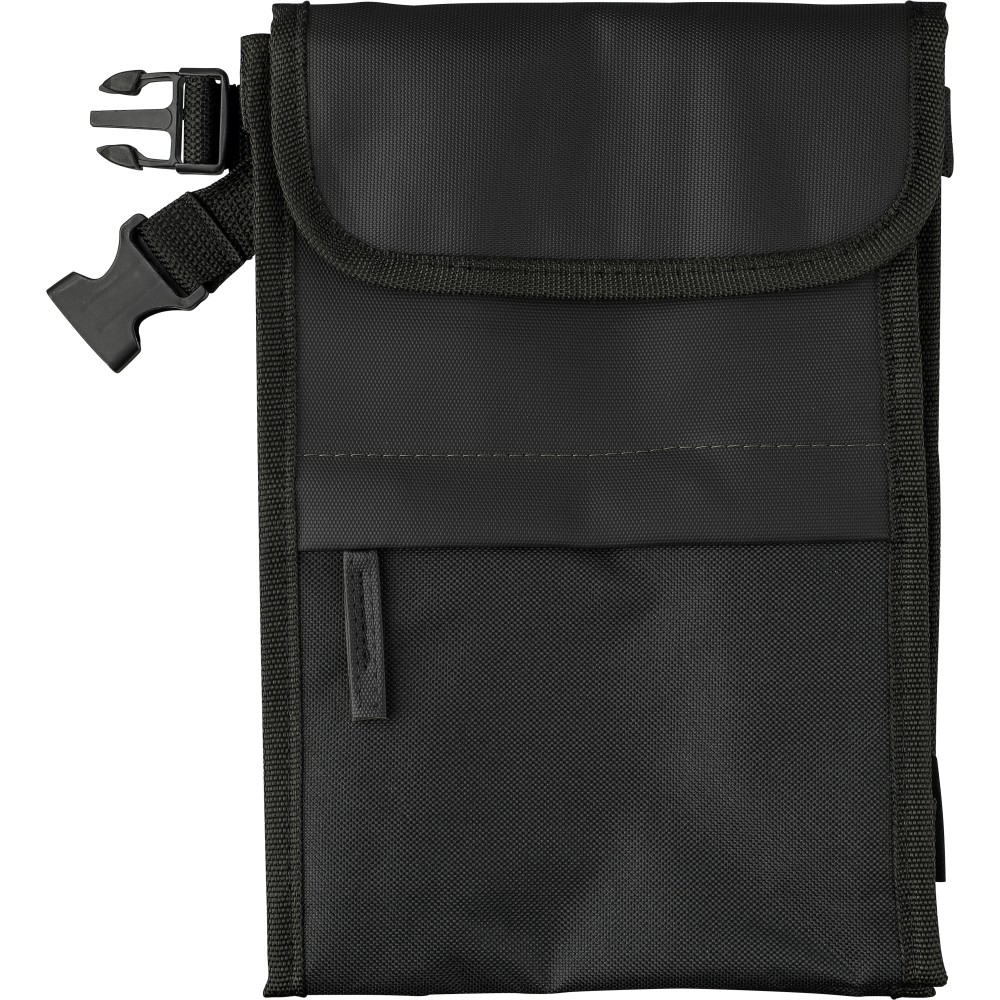 600D rPET poliészter hűtőtáska. PU bevonat teszi vízlepergetővé. Alumíniumfóliás béléssel, első cipzáras zsebbel, három tárolórésszel, hálós oldalzsebbel, tépőzáras záródással. Csatos hordozópánttal. Kapacitása 5 liter. Oldalán rPET címkével.