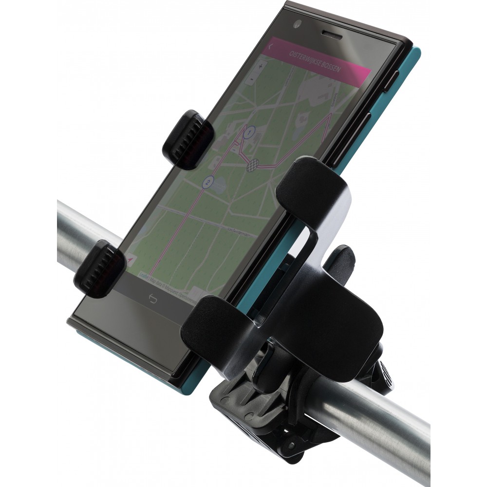 Kerékpár kormányára szerelhető, állítható telefontartó.