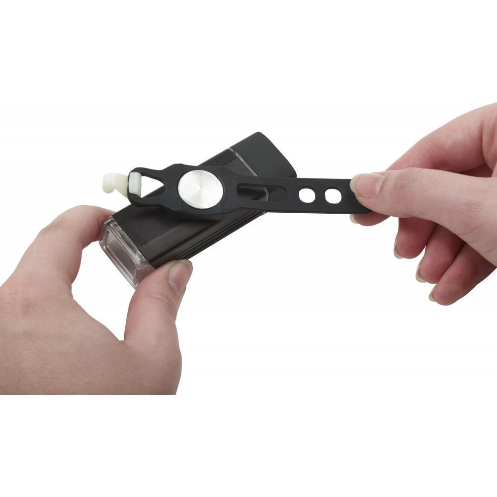 COB biciklilámpa USB csatlakozóval, amely a töltést is lehetővé teszi, tetején ki-/bekapcsoló gombbal, 4-féle beállítási móddal: folyamatosan világító, csökkentett fényerővel világító, gyors villogó, lassú villogó. Mágneses pánttal rögzíthető a kerékpár kormányára.