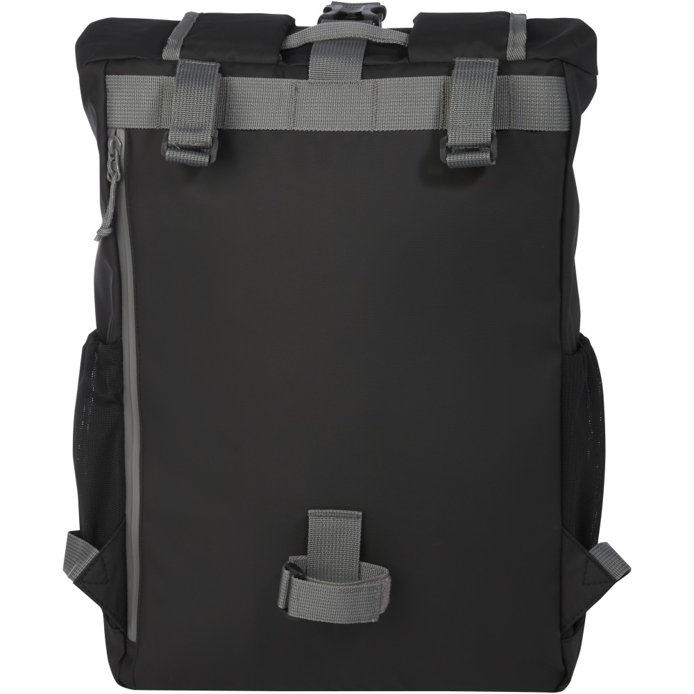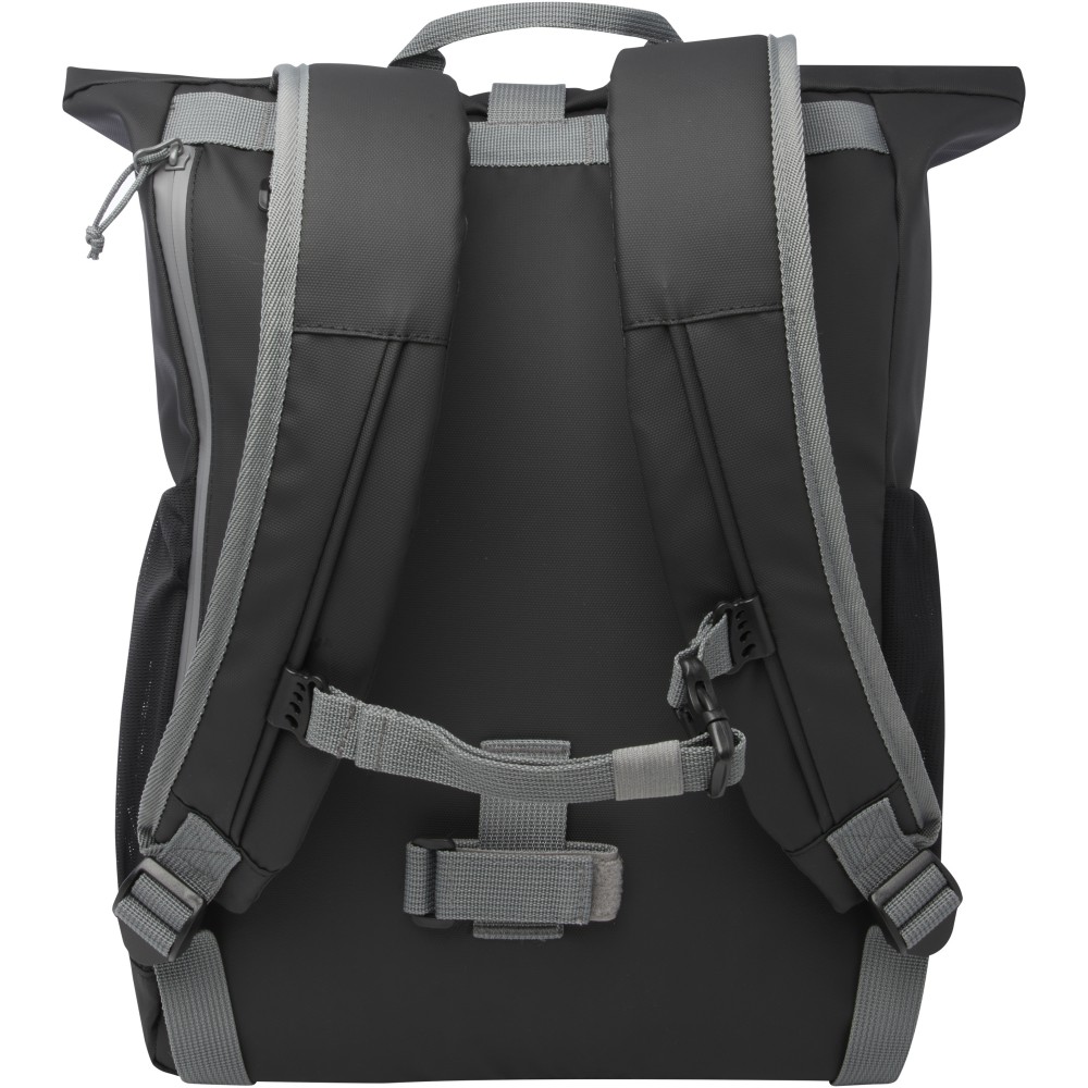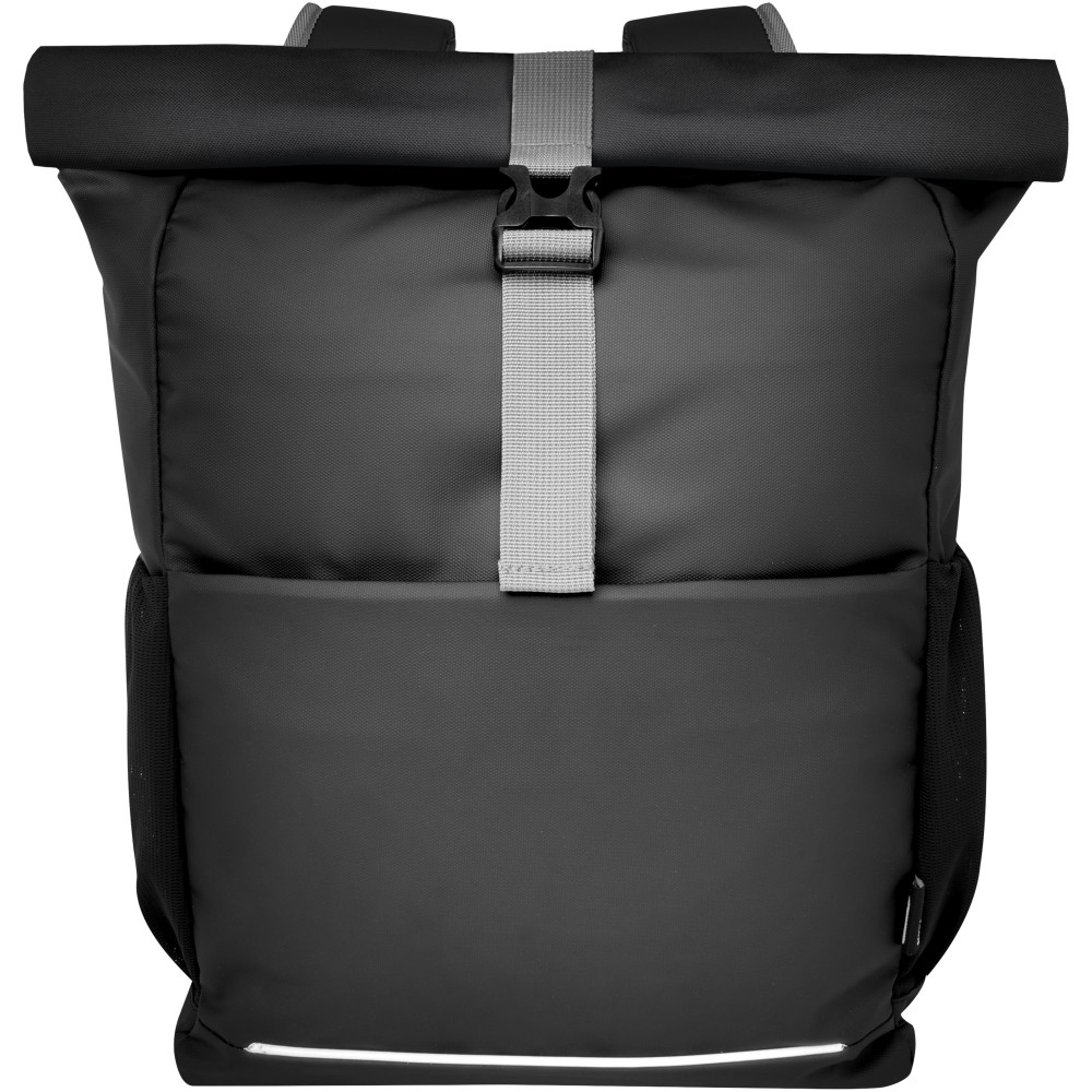 GRS tanúsítvánnyal rendelkező újrahasznosított anyagokból készült, vízálló, kerékpáros táska. Párnázott 15 -os laptop rekesszel, több zsebbel, állítható hurkokkal, valamint fényvisszaverő csíkokkal a láthatóság érdekében. Űrtartama: 20 liter. PVC-mentes.