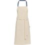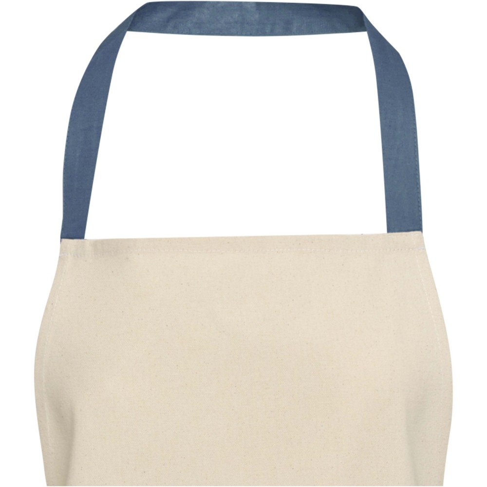 A Nia kötény 100% GRS tanúsítvánnyal rendelkező, 200 g/m2 újrahasznosított pamutból készült. Természetes pamut színe és kontrasztos nyakkpántja elegánsan védi ruhádat főzés közben. Két egymás melletti zsebbel rendelkezik, összesen 45 x 20 cm-es mérettel, és 1 méter hosszú pánttal rögzíthető hátul.