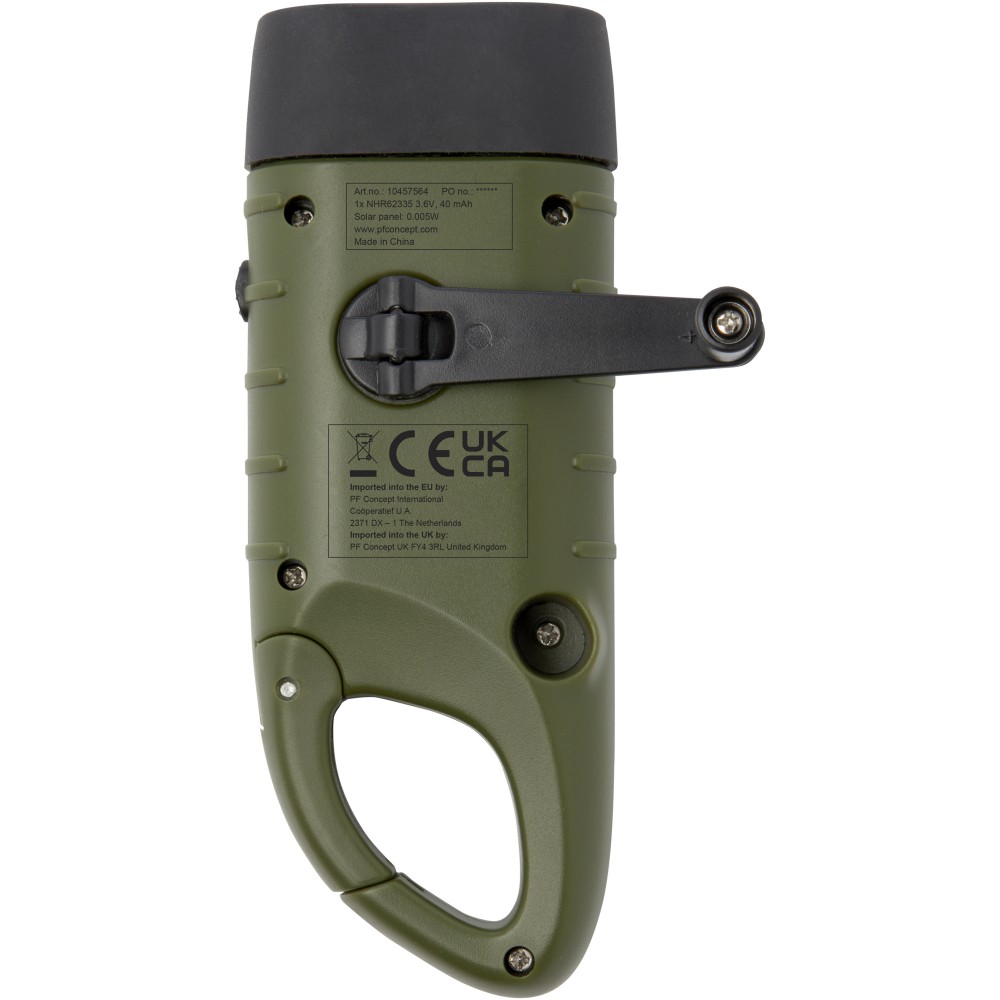 Eleged van abból, hogy akkor fogy el az energia, amikor a legnagyobb szükséged van rá? Mondj búcsút a frusztráló pillanatoknak innovatív, problémamentes Helios világítási megoldásunkkal. Ez az újrahasznosított műanyag napelemes, dinamós zseblámpa beépített karabinerrel rendelkezik, amely lehetővé teszi a könnyű rögzítést a hátizsákokhoz, övekhez vagy felszerelésekhez, így nélkülözhetetlen kempingezéshez vagy túrázáshoz. Mindössze 1 perc kézi forgatással 8 percnyi fényt élvezhetsz. Amikor pedig süt a nap, a napelem hasznosítja az nap energiáját, így biztosítva, hogy a fényforrás mindig készen álljon. 3 LED lámpával és 10 000 mcd fényerővel rendelkezik. Akkumulátor típusa: 40 mAh Ni-Mh, 3,6 V. Fenntartható forrásból származó STAC díszdobozba csomagolva. Újrahasznosított ABS műanyag. Csomagolás: FSC Mix Credit P5.1 CU-COC-877277.