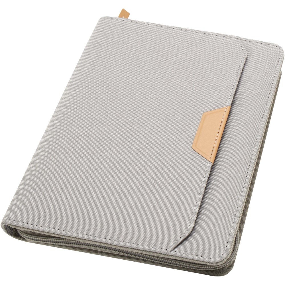 A Nomumi A5 portfólió lekerekített sarkú, újrahasznosított műanyagból készült, praktikus irodai alapdarab. 64 db krém színű, 80 g/m2 vonalas lapot tartalmaz, cipzáros záródással, tollhurokkal és egy zsebbel rendelkezik.