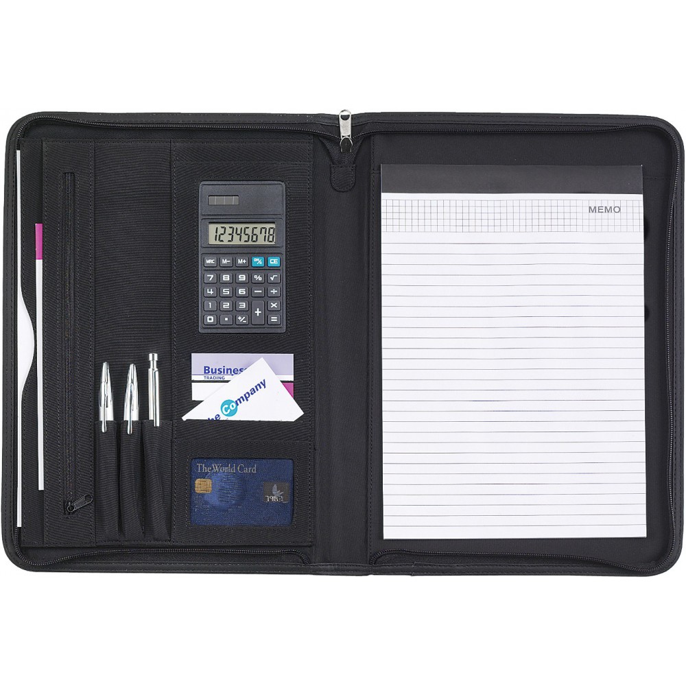 A4-es cipzáras mappa 8 karakteres számológéppel , jegyzettömbbel. Napelemmel és elemmel is működik. Mikroszálas anyagból.