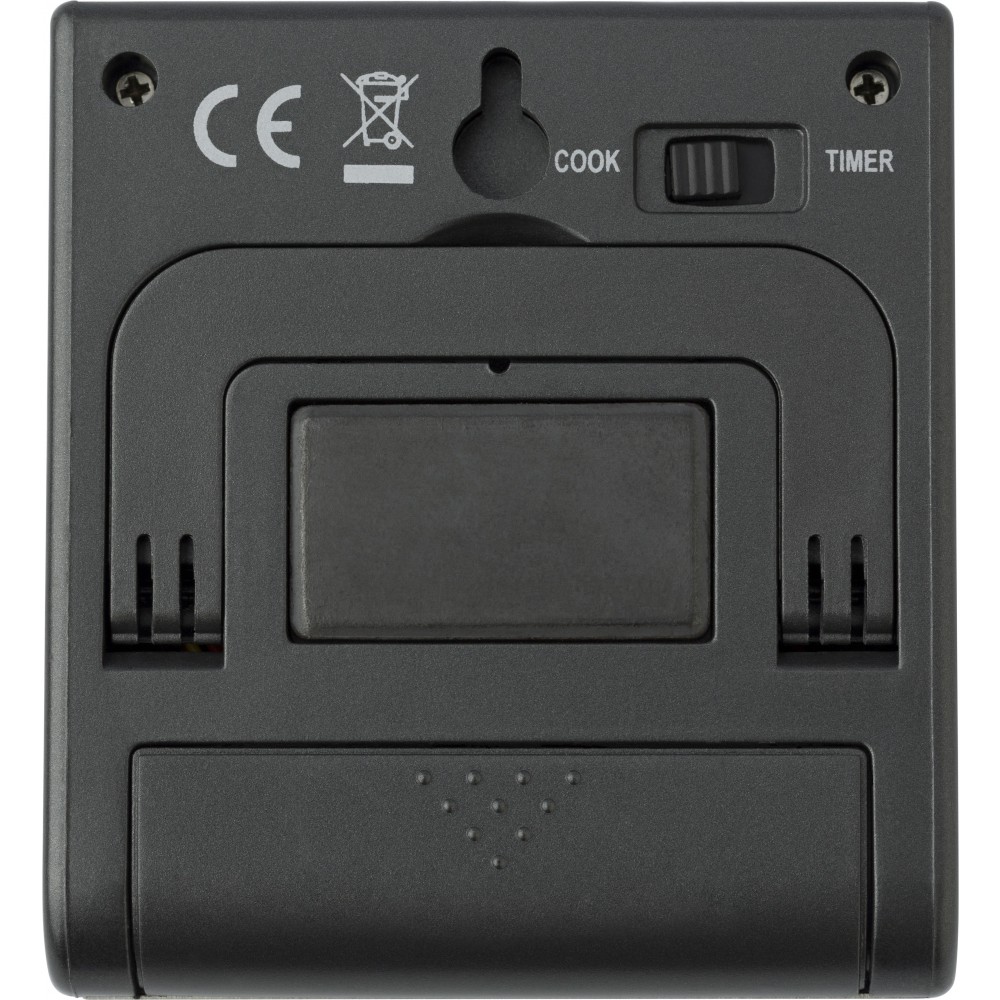 Időmérő és időzítő funkcióval ellátott húshőmérő mágnessel, állvánnyal, ABS műanyagból. Az elemet tartalmazza.