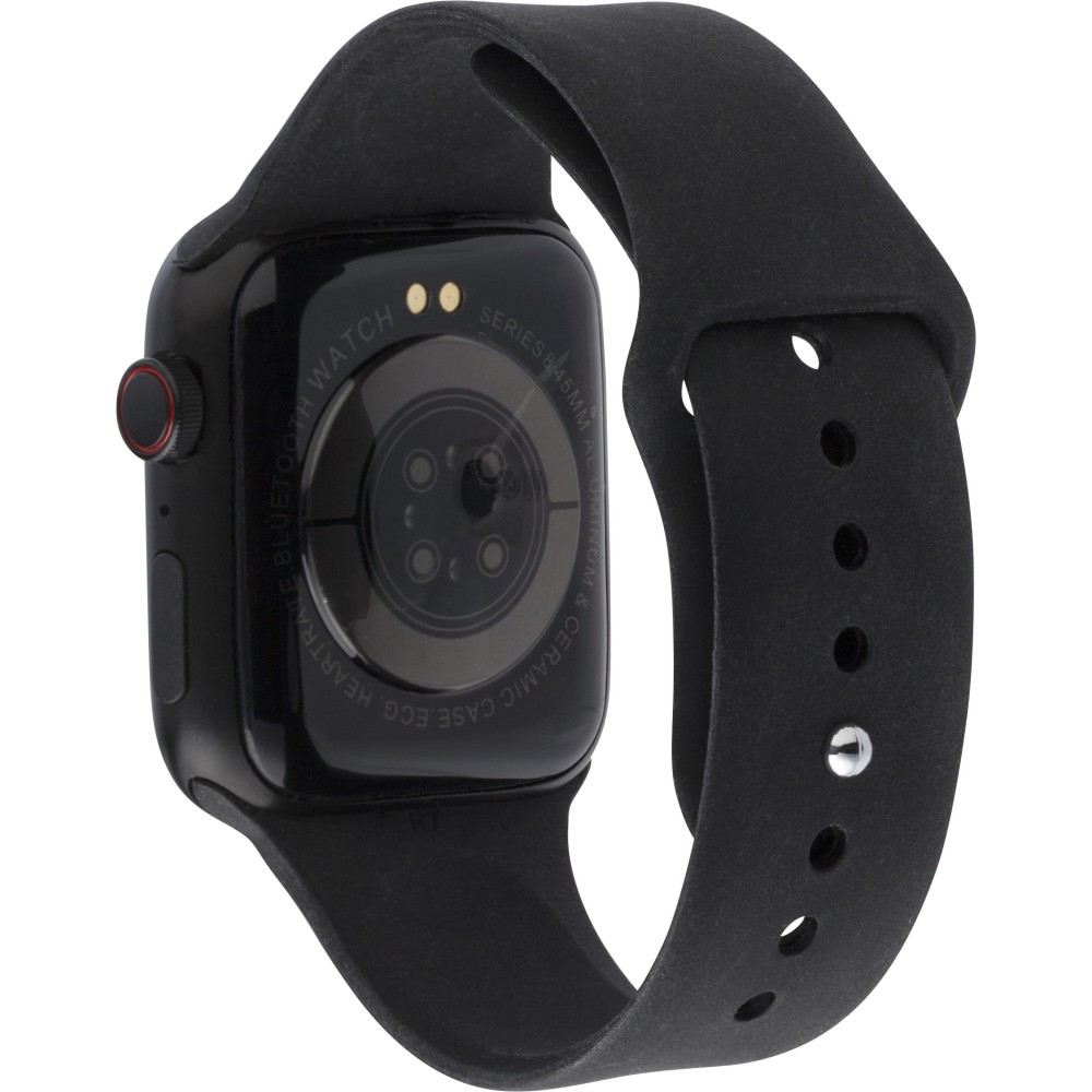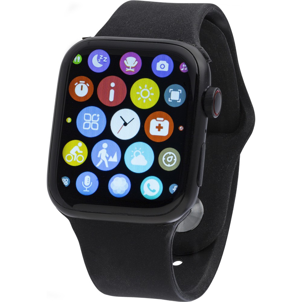 PC és PVC okosóra állítható karpánttal és vezeték nélküli technológiával. Érintőképernyővel és görgető gombbal az oldalán. Funkciók: telefonhívás, szívritmus, alvásfigyelő, oxigénmérés, üzenet emlékeztető, ivás emlékeztető, edzés emlékeztető. USB kábellel együtt. Android és iOS rendszerrel is kompatibilis. Egyenként csomagolva kartondobozban.