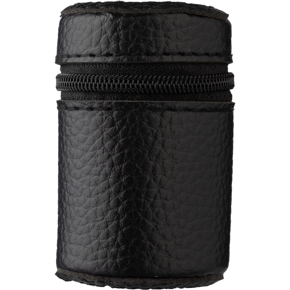 Rozsdamentes acél felespoharak. 4 darabos készlet (30 ml) PU bőrből készült cipzáras tokban.