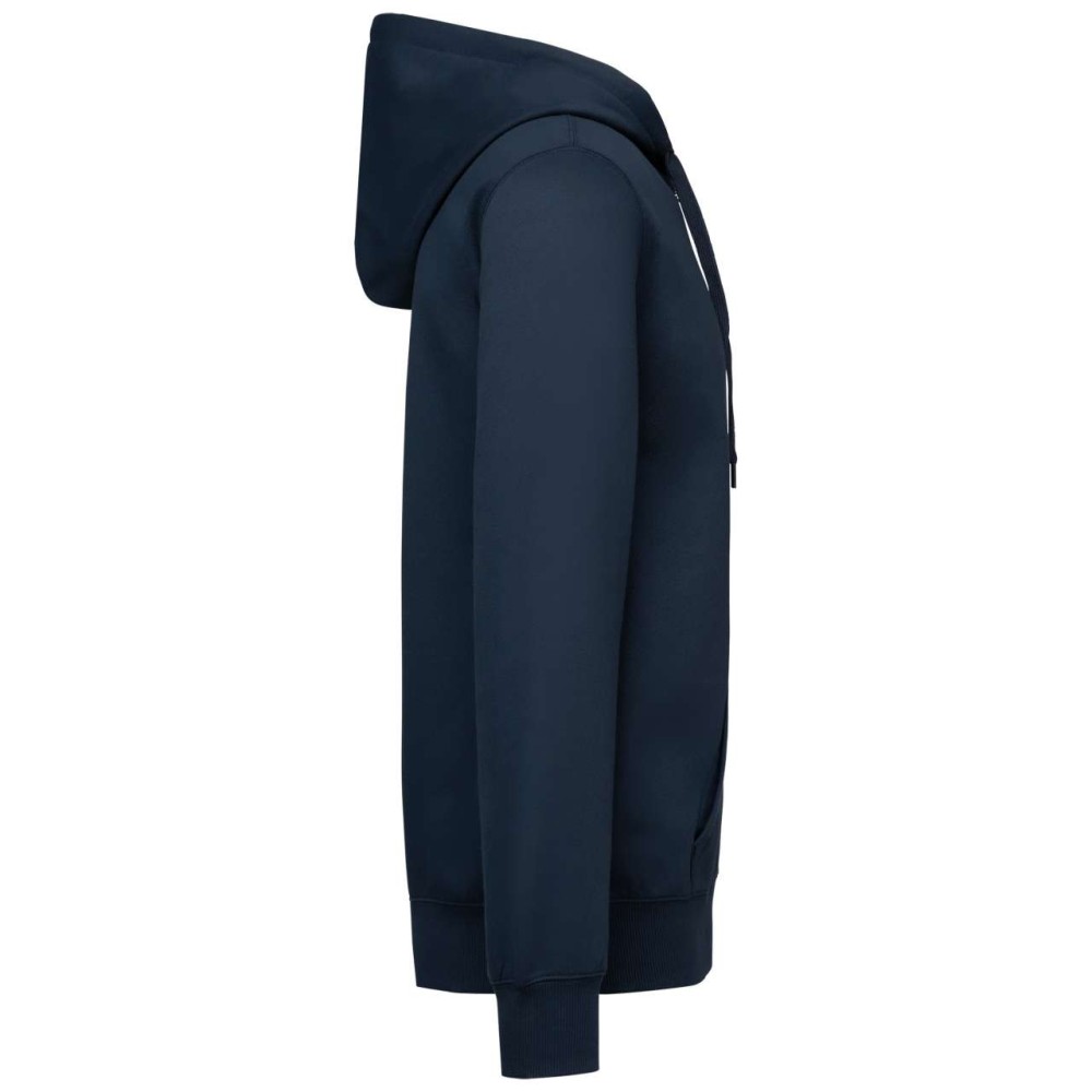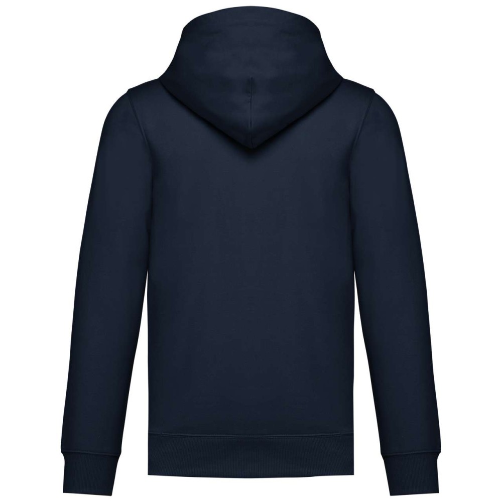 50% gyűrűs fonású pamut / 50% újrahasznosított poliészter, fésült pamut. Egyenes szabású, vágott és varrott. 1x1 bordás kötés a nyakkivágás, a mandzsetta és az alsó szegély jobb megjelenése érdekében. Kenguruzseb. Policotton dzsörzé bélésű kapucni lapos húzózsinórral. Színben illeszkedő dzsörzé szalagos belső a nyakkivágásnál. Csak méretcímke márkajelzés nélkül.
