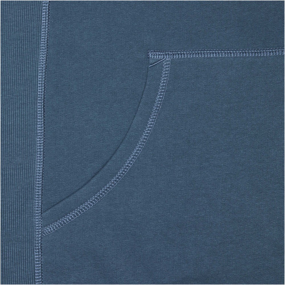 Normál szabásvonal. 2x2-es bordás oldalpanel, ujj- és derékpasszé. Kenguruzseb. Kapucniállító húzózsinór (kivéve gyerek modell). Bélelt kapucni. Saját anyagából készült félholdas betét a nyaknál. Szatén szegély a nyakvonalban. Kontrasztos színű halszálkamintás szalag a kapucniban. Hátul tónusos logónyomat. Antikolt fém fűzőlyuk-gyűrű gravírozott logóval. 80% pamut és 20% poliészter, kötött, belül bolyhozott. 300 g/m2.
