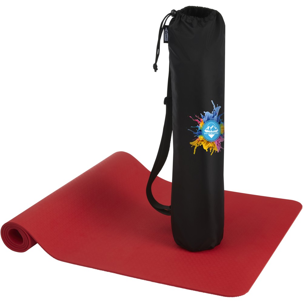 Újrahasznosított TPE műanyagból készült jógaszőnyeg. A TPE természetes csúszásgátló tulajdonságokkal rendelkezik, így stabil felületet biztosít, amely segít megelőzni a csúszást a jógapózok során. Az újrahasznosított TPE felhasználása a jógaszőnyegek gyártása során segít csökkenteni a hulladékok mennyiségét, és elősegíti a környezet fenntarthatóságát azáltal, hogy minimalizálja az új műanyagok használatát. Mérete: 173 x 61 x 0,6 cm. A tasak RPET anyagból készült.