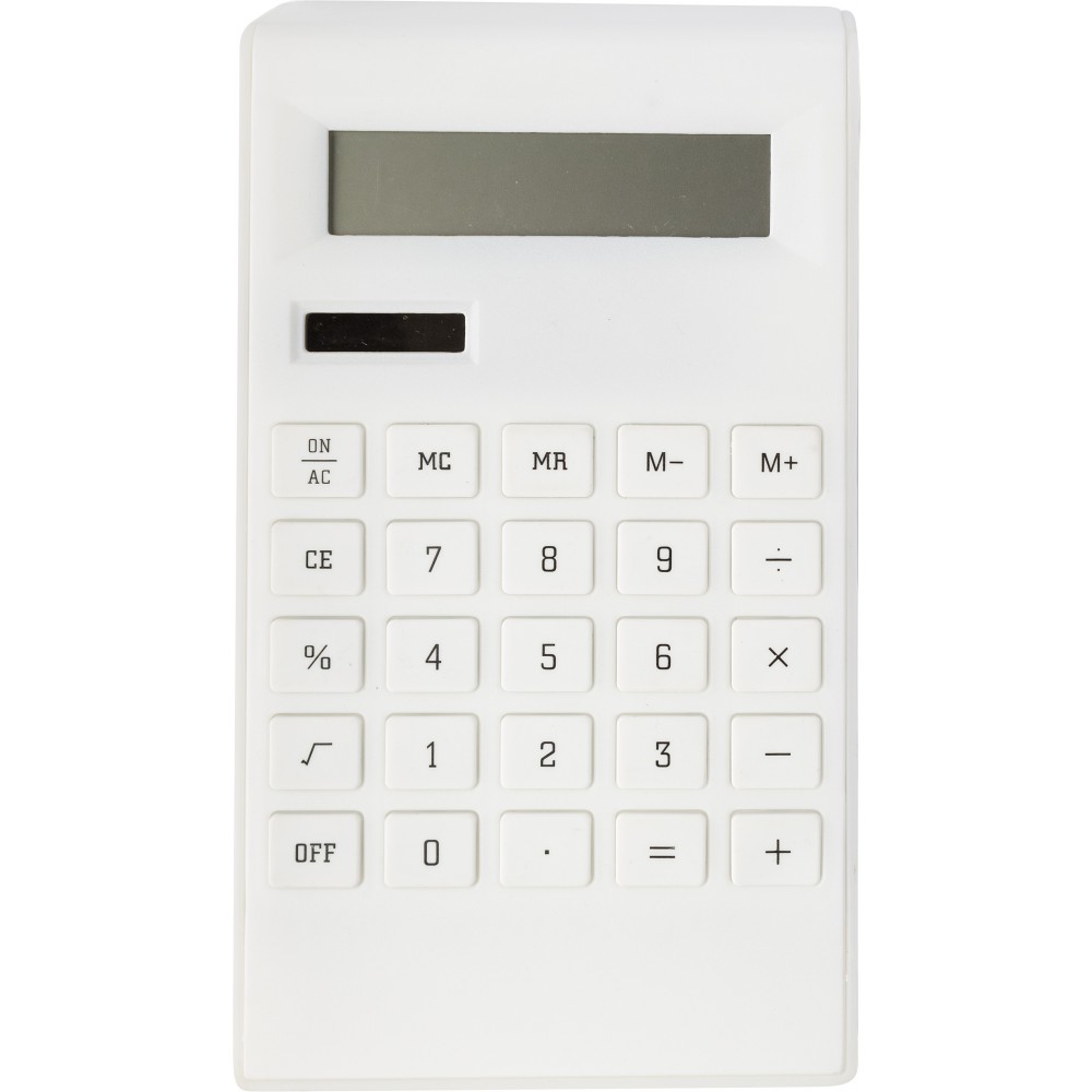 Számológép 8 karakteres kijelzővel, ABS műanyagból. Az elemet tartalmazza.