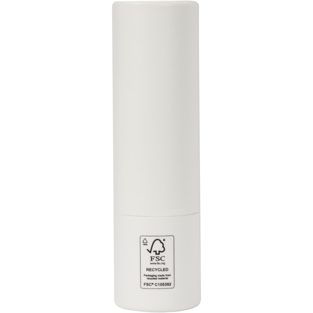 Ajakápoló. Védelmet nyújt a nap ultraibolya (UV) sugarai ellen. Úgy tervezték, hogy hidratálja és védje az ajkakat. A külső burkolat újrahasznosított papírból készült. Jó választás magánszemélyek és vállalkozások számára, akik a fenntarthatóbb termékeket részesítik előnyben. Az illata vanília. Szavatosság: vásárlástól számított 3 év. FSC újrahasznosított 100% P10 CU-COC-877277.