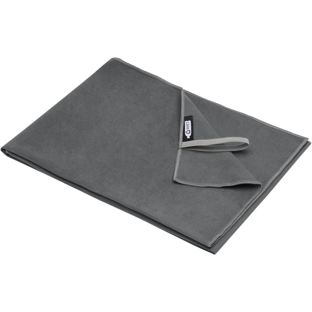 A Pieter sporttörülköző nagyon jó nedvszívó, könnyű, gyorsan szárad, az anyaga pedig tartós és rendkívül puha. Ha a törölközőt összehajtjuk és gumiszalaggal rögzítjük, kis méretűre csomagolható, így alkalmas arra, hogy magunkkal vigyük az edzőterembe, uszodába, vagy ha hátizsákos túrára, esetleg kempingezésre megyünk. A törülköző 50 x 100 cm méretű, 90% GRS újrahasznosított poliészterből és 10% nejlonból készült, és 40 °C-on mosható mosógépben. Újrahasznosított PET műanyagból készült tároló tasakkal (17 x 13 cm) szállítjuk.