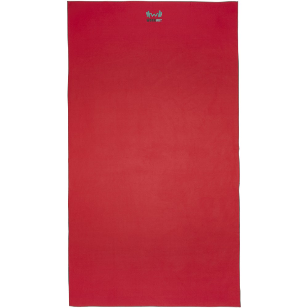 A Pieter sporttörülköző nagyon jó nedvszívó, könnyű, gyorsan szárad, az anyaga pedig tartós és rendkívül puha. Ha a törölközőt összehajtjuk és gumiszalaggal rögzítjük, kis méretűre csomagolható, így alkalmas arra, hogy magunkkal vigyük az edzőterembe, uszodába, vagy ha hátizsákos túrára, esetleg kempingezésre megyünk. A törülköző 100 x 180 cm méretű, 90% GRS újrahasznosított poliészterből és 10% nejlonból készült, és 40 °C-on mosható mosógépben. Újrahasznosított PET műanyagból készült tároló tasakkal (25 x 8,5 cm) szállítjuk.