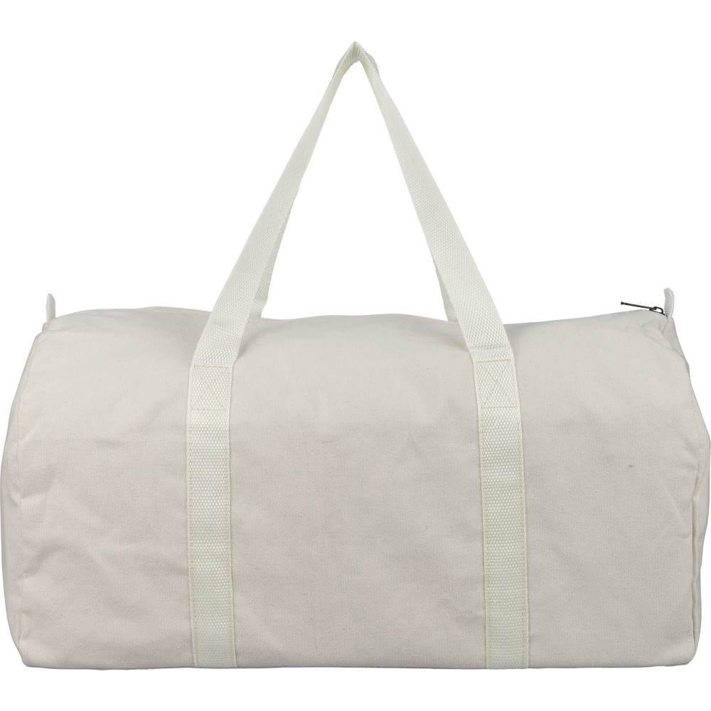 Újrahasznosított pamut-poliészter, 330 g/m2 kevertszövetből készült sporttáska nagy, cipzáras felső rekesszel, 100 cm hosszúságú és 3 cm szélességű hosszú fülekkel, a táska színével megegyező hevederrel. Megközelítőleg 30 literes űrtartalommal rendelkezik. A külső felületen rPET címkével, a belső részben újrahasznosított alapanyagra utaló címkével ellátva.