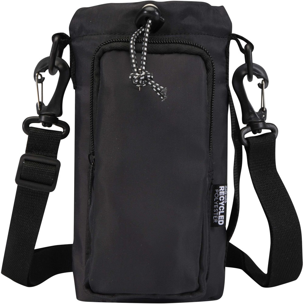 A Trip Aware® újrahasznosított utazó kulacstartó táska praktikus és könnyű megoldás a folyadékpótlás biztosítására útközben. Tartós 290D twill poliészterből készült, kötött hátoldallal és RPET 210D/PU béléssel, így egyszerre nyújt tartósságot és átgondolt kialakítást. Fő rekesze húzózsinórral záródik, és alkalmas mind nagyobb, füllel ellátott, mind kisebb palackok tárolására, a hátsó nyílás pedig könnyű hozzáférést biztosít. Elülső zsebében elférnek az alapvető holmik, például a telefon, ezen belül belső nyitott zseb és szalag a kulcsok rögzítéséhez. Az állítható pánt és az oldalsó fogantyú rugalmas hordozási lehetőségeket kínál. Minden táska Aware® nyomkövetővel érkezik, amely QR-kód segítségével lehetővé teszi a termék eredetének és útjának nyomon követését, növelve az ellátási lánc átláthatóságát és a kapcsolatot a termék gyártási folyamatával. Űrtartalom: 2 liter.
